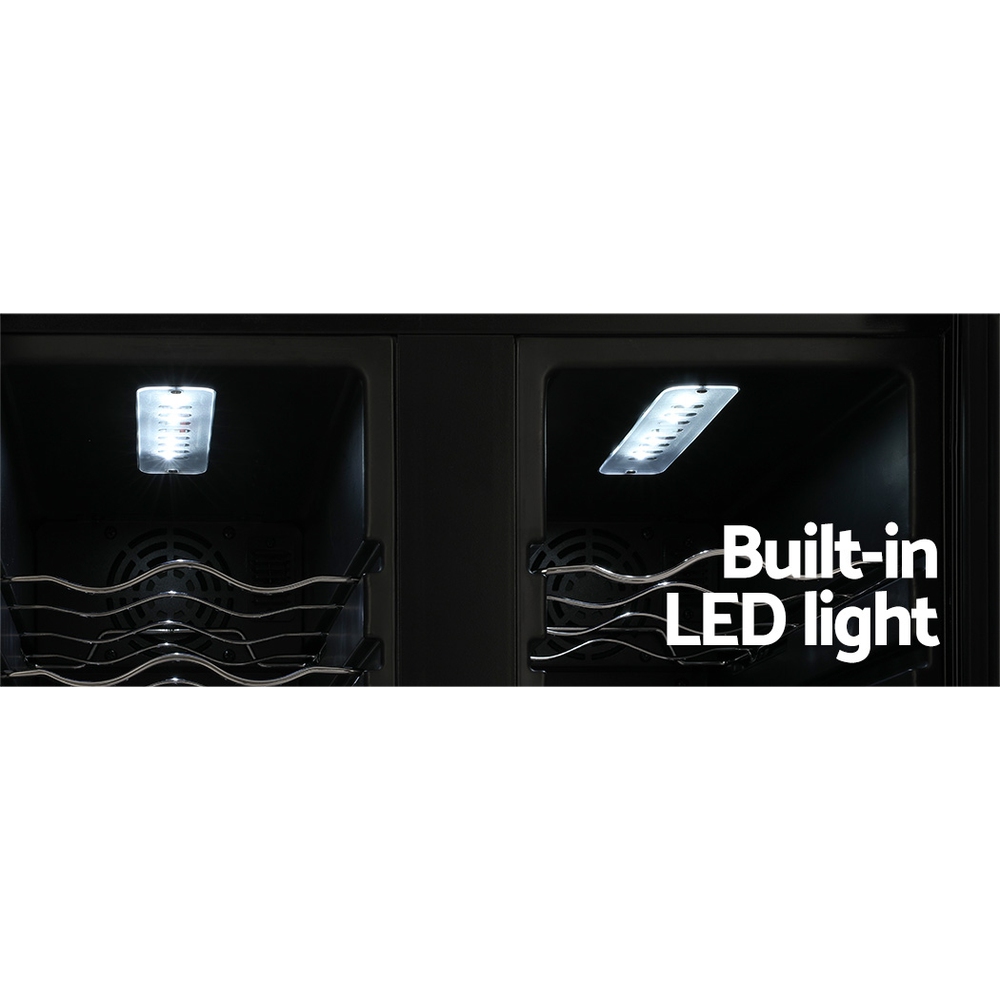 Devanti Dual Zone Wine Fridge Cooler, 24 Bottle Capacity, UV-Resistant, Silent Operation, Digital Control, Black