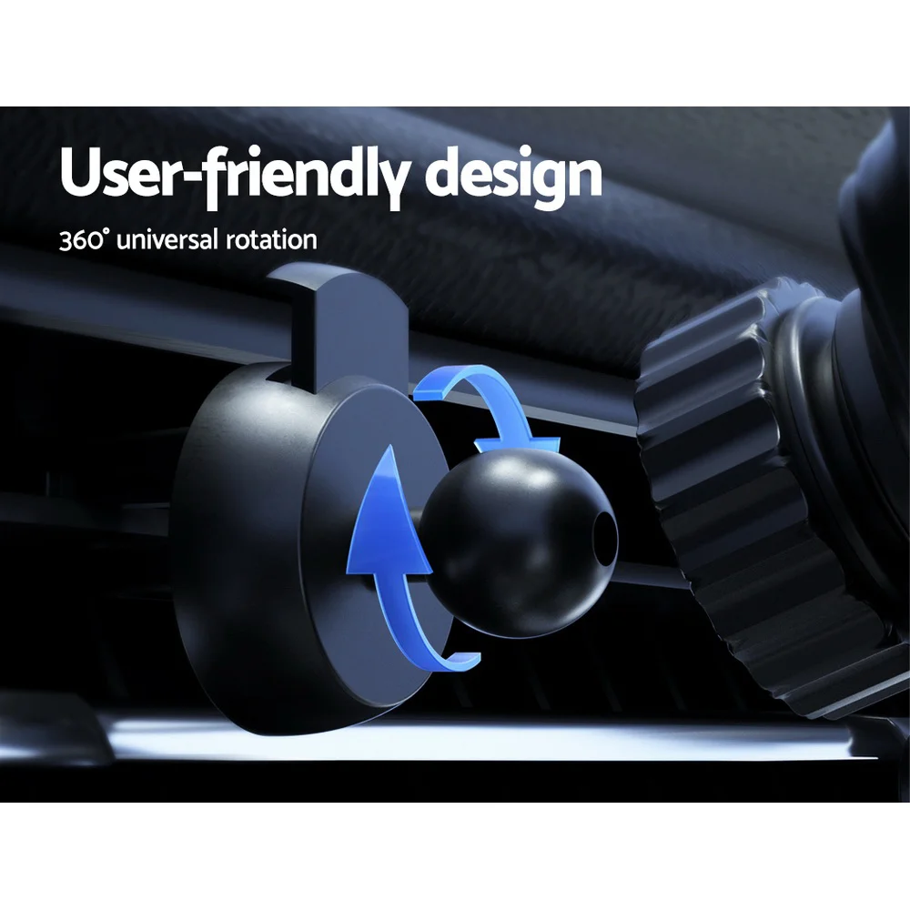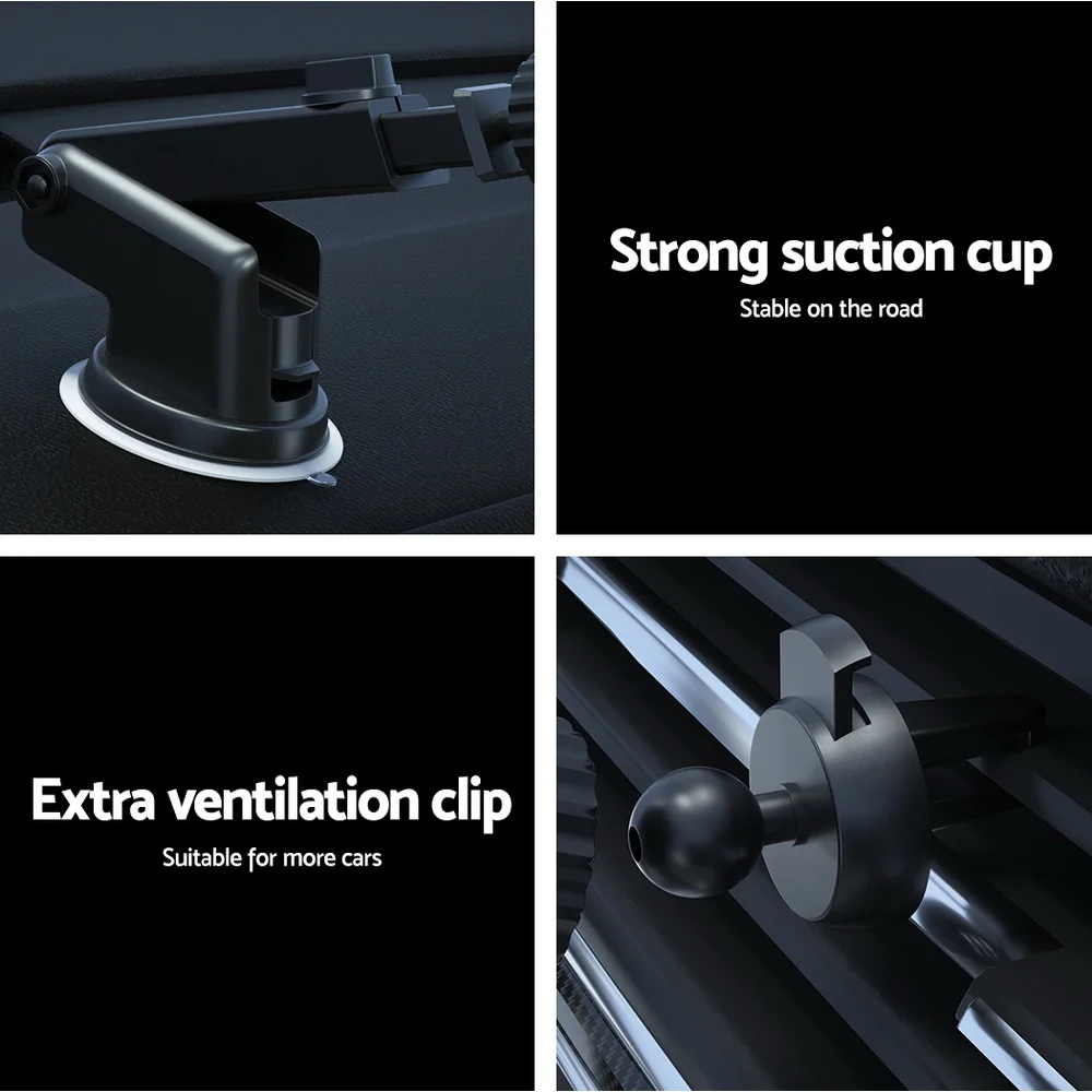 Devanti Wireless Car Charger 15W Fast Charging Car Mount with Vent Clip & Suction Cup, 360° Rotation, Safety Features