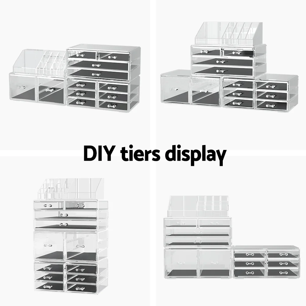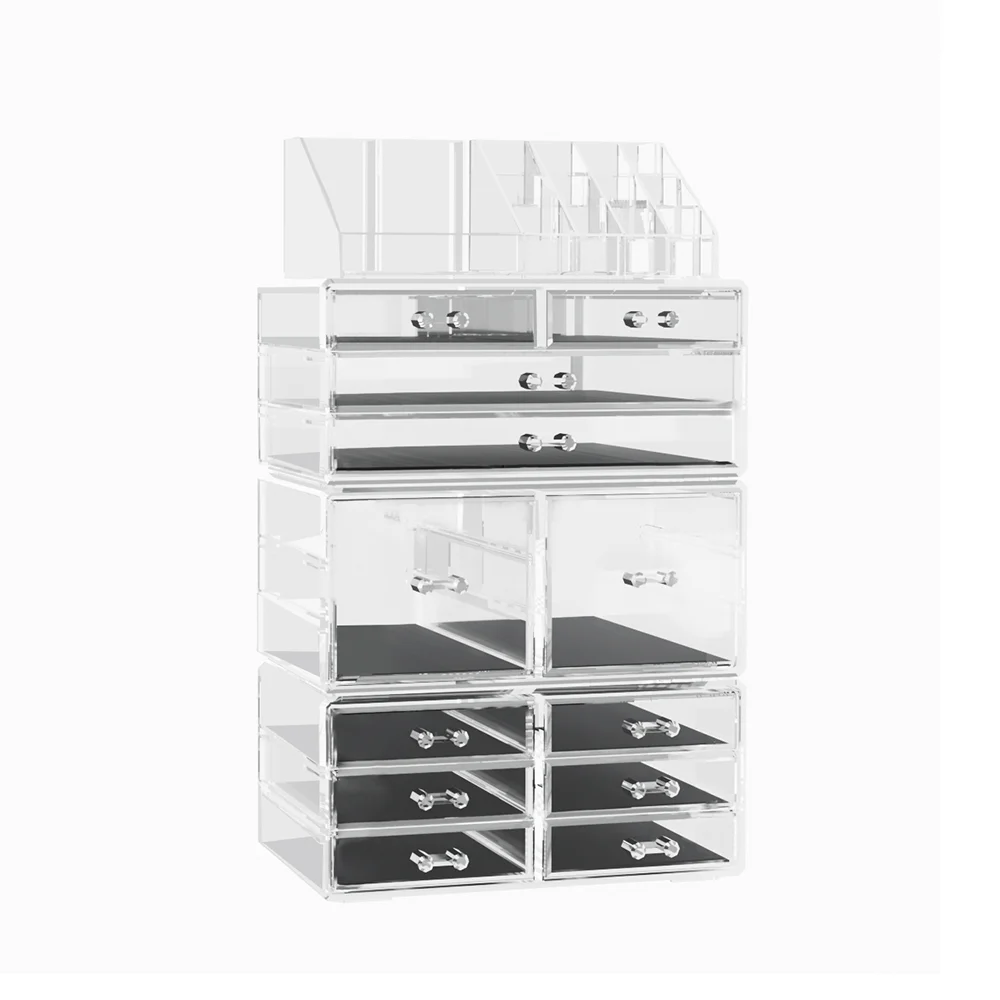 Embellir Acrylic Makeup Case, Clear Cosmetic Organizer with 12 Drawers, Portable Storage Box & Jewelry Holder