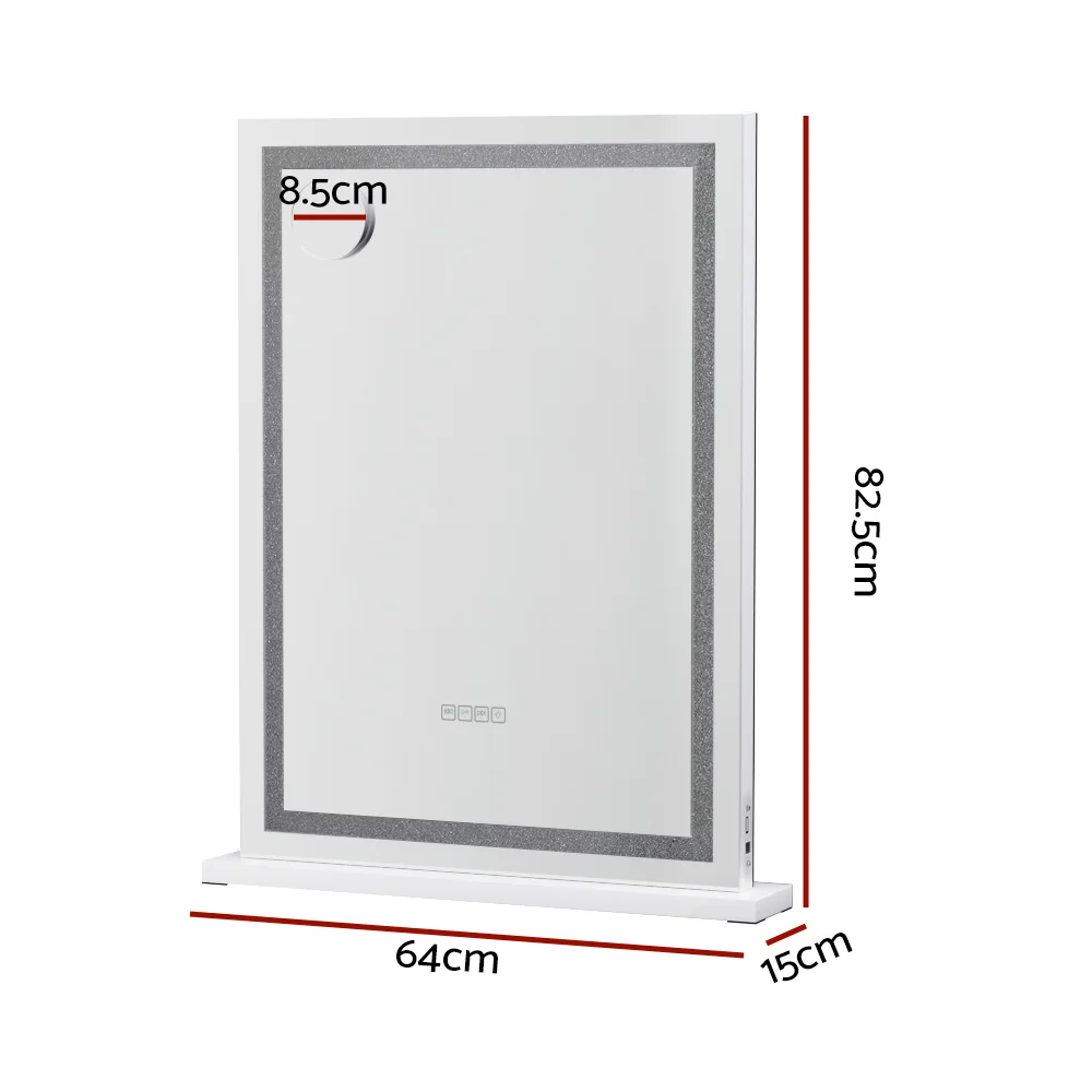 Transform your vanity into a Hollywood dressing room with the Embellir Bluetooth Makeup Mirror. This stunning 58x80cm mirror features adjustable LED lighting with three colour temperatures, ensuring perfect illumination for your makeup artistry. Enjoy your favourite tunes with the built-in Bluetooth speaker and keep devices charged via the USB port. Its sturdy, lightweight frame can be freestanding or wall-mounted. Elevate your beauty routine with this glamorous addition, backed by a 1-year warranty.