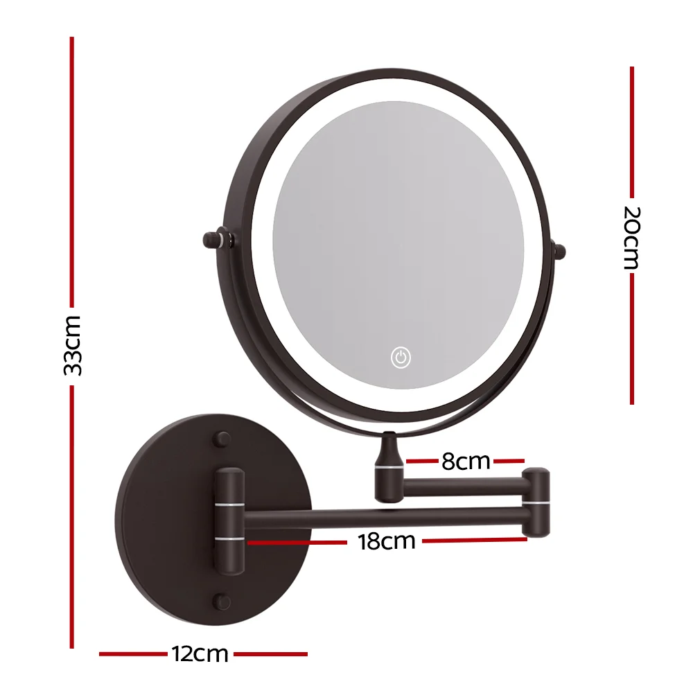 Embellir Extendable Makeup Mirror, Iron & Aluminum, 33x32cm, Brown - 10X Magnifying, LED Touch Control, 3 Light Modes