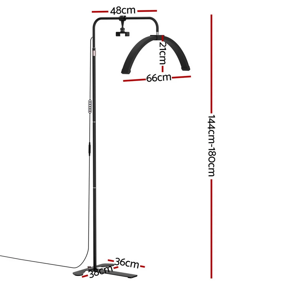 Illuminate your beauty space with the Embellir LED Beauty Light Half Moon Lamp, designed for precision in makeup, lash extensions, and beauty detailing. This innovative lamp features a unique half-moon design with 252 LED beads, offering shadow-free, even lighting. Customise your setting with adjustable colour temperature (3000K-6000K) and brightness (10-100%). With flexible height adjustment (144-180cm), 360-degree rotation, and remote control, it’s ideal for home salons and content creators. The detachable phone holder adds versatility for tutorials or calls. Crafted from durable aluminium alloy, it’s powered at 40 watts, ensuring consistent performance.