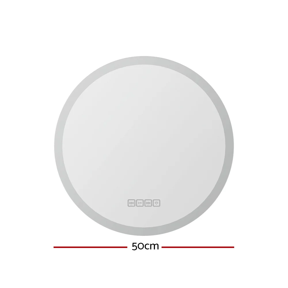 Embellir Bluetooth LED Wall Mirror, 50CM Round, Waterproof, Anti-Fog, Touch Control, Built-in Speaker, Bathroom Decor