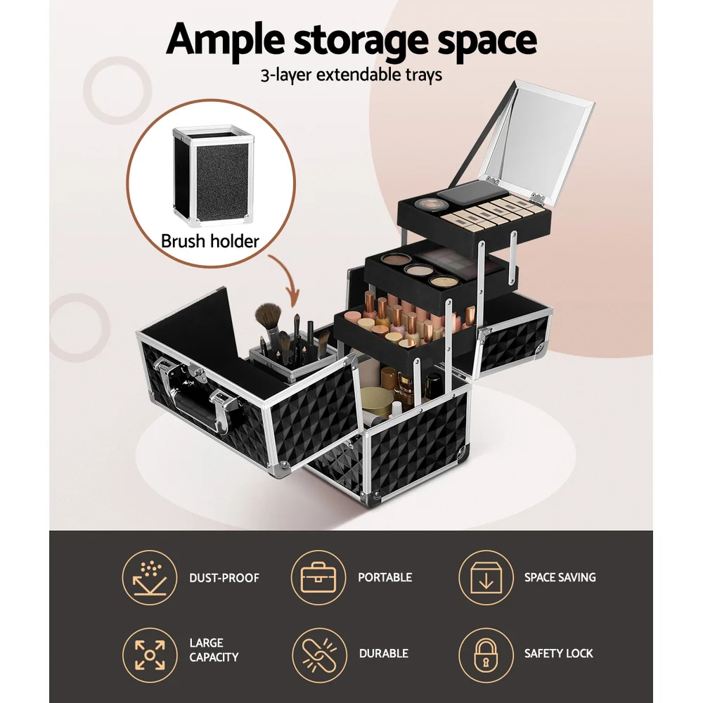 Embellir Makeup Case Beauty Organizer Bag, Aluminum ABS, Diamond Black, 27x19.5x27.5cm, Portable Travel Cosmetic Storage