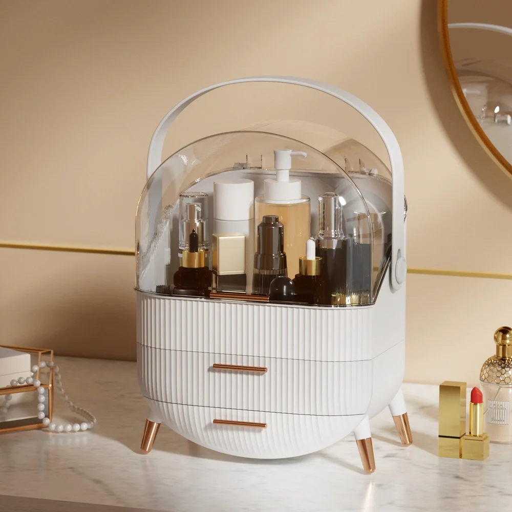 The Embellir Makeup Case is the ultimate solution for beauty enthusiasts who love to travel. With its sleek, portable design and convenient carry handle, this case allows you to bring your entyre cosmetic collection wherever you go. It features two delicate sliding drawers and a spacious top section for organised storage, while the lockable hoist buckle ensures your items stay secure. Made from waterproof material, it resists spills and is easy to clean, providing a hassle-free experience. Plus, it comes with a 1-year warranty for peace of mind.