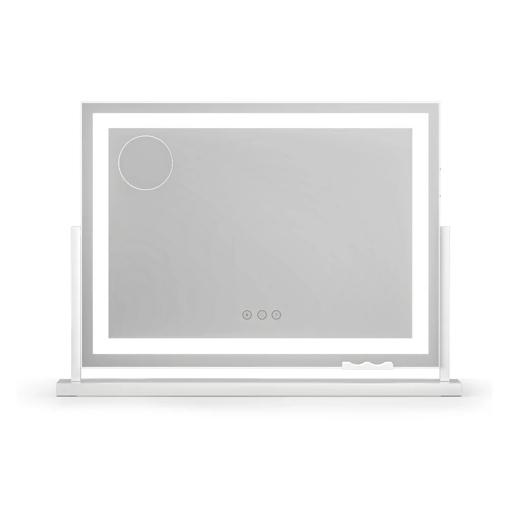 Enhance your beauty routine with the Embellir Makeup Mirror, a perfect blend of functionality and style. This extra-large 58x46cm vanity mirror features a bright LED light strip that offers three professional colour temperatures—warm, neutral, and cool—along with fully adjustable brightness for impeccable visibility. The 360° swivel base ensures ideal positioning, while a side USB port adds convenience by keeping your devices charged. Complemented by a bonus phone holder and a 10x magnifier, this mirror is perfect for both professional makeup artists and home vanity enthusiasts. Experience modern elegance with touch-sensitive controls and a minimalist design, backed by a 1-year warranty.