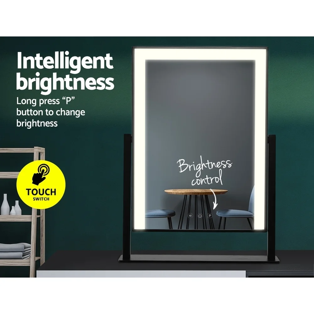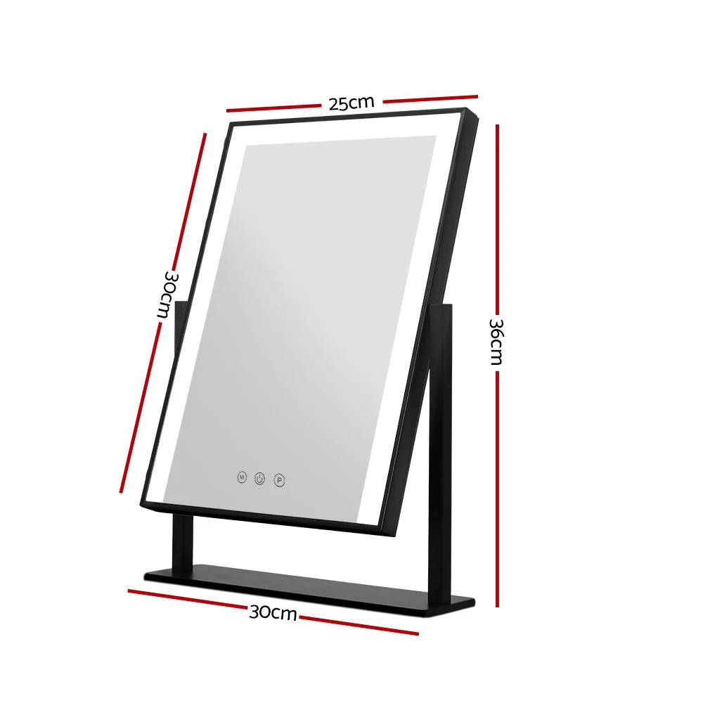 Embellir Standing Makeup Mirror, Metal, 25x30cm, Black, LED Light, Rotatable, Touch Control, Hollywood Vanity Style
