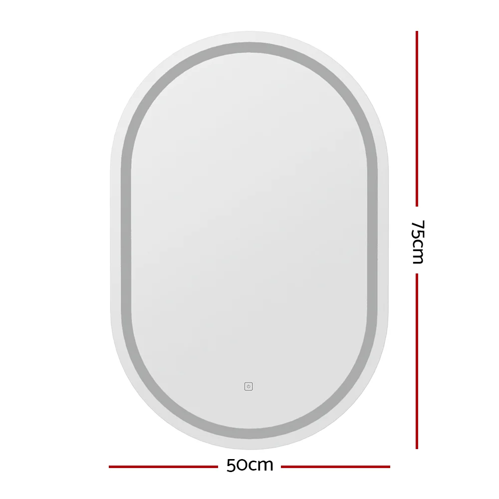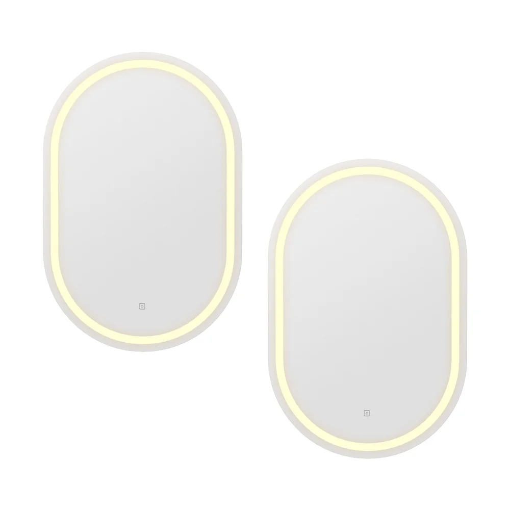 Embellir 2 Pack Oval LED Wall Mirror 50x75cm with Anti-Fog, Touch Control, Adjustable Light for Bathroom Decor