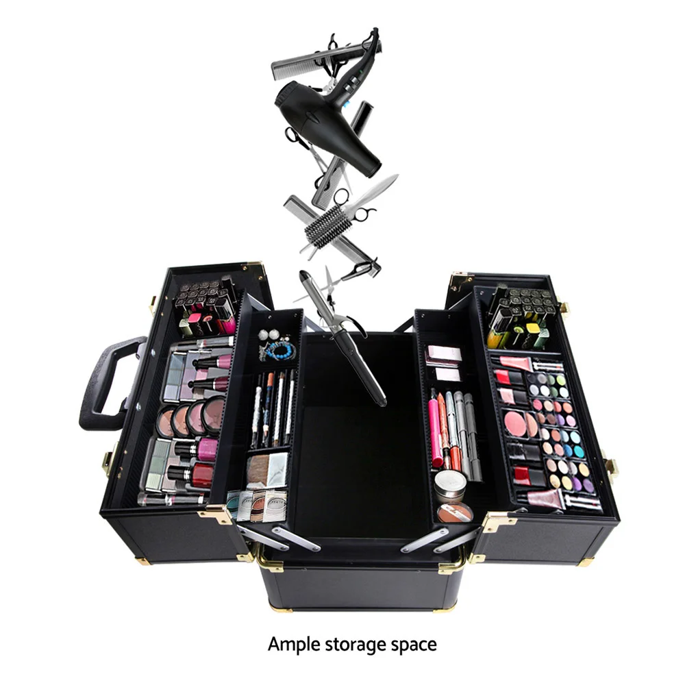 Embellir Portable Cosmetic Beauty Makeup Case, Aluminum, 36x25x23cm, Black & Gold, Professional Organizer with Lock