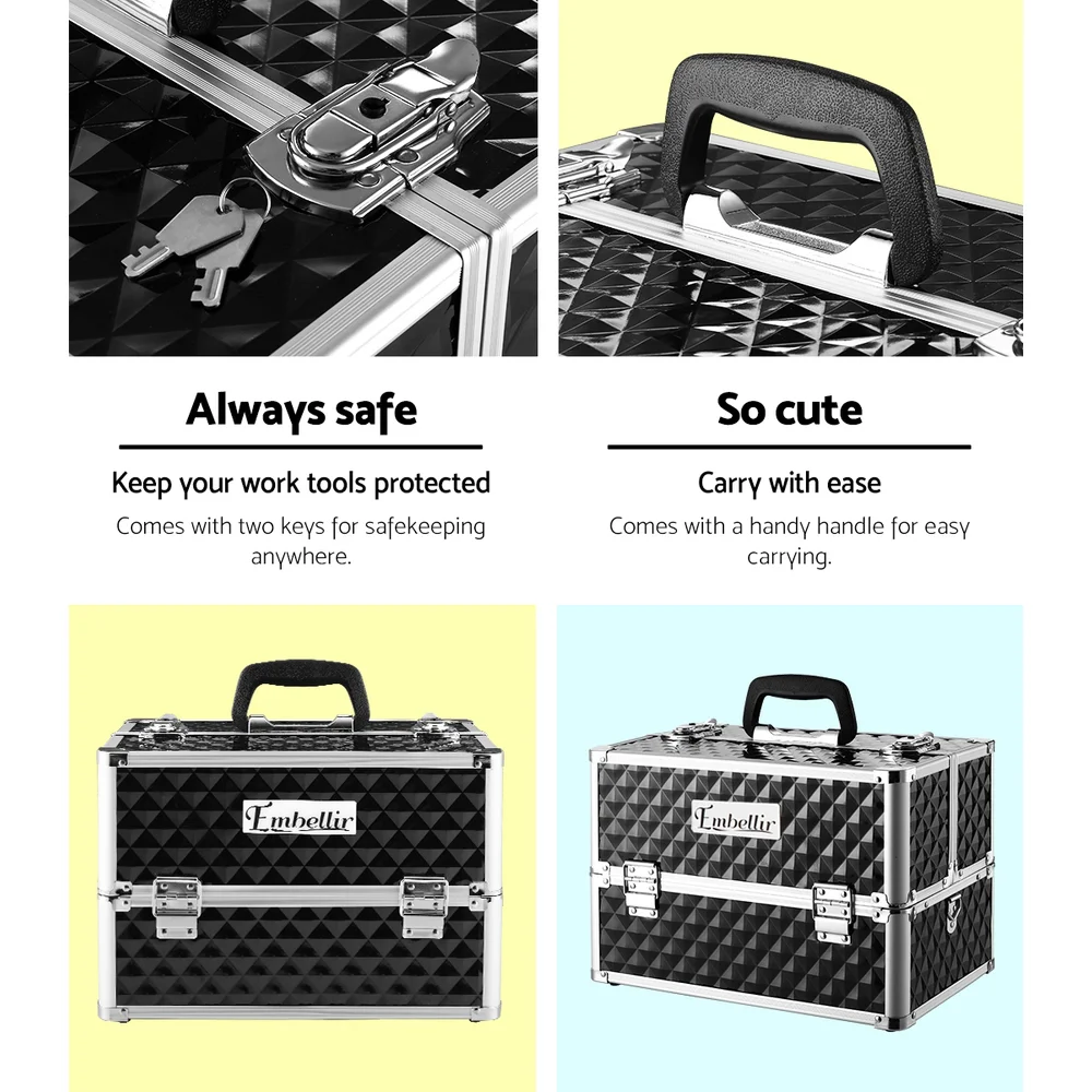 Embellir Makeup Case Beauty Organizer Bag, Aluminum ABS, Diamond Black, 27x19.5x27.5cm, Portable Travel Cosmetic Storage