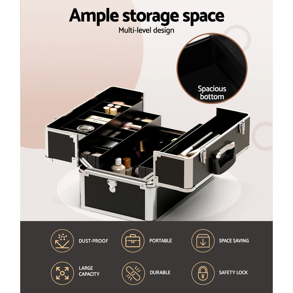 Embellir Portable Cosmetic Beauty Makeup Case, Aluminum Frame, Black Velvet Interior, 23x36x27cm, Adjustable Dividers