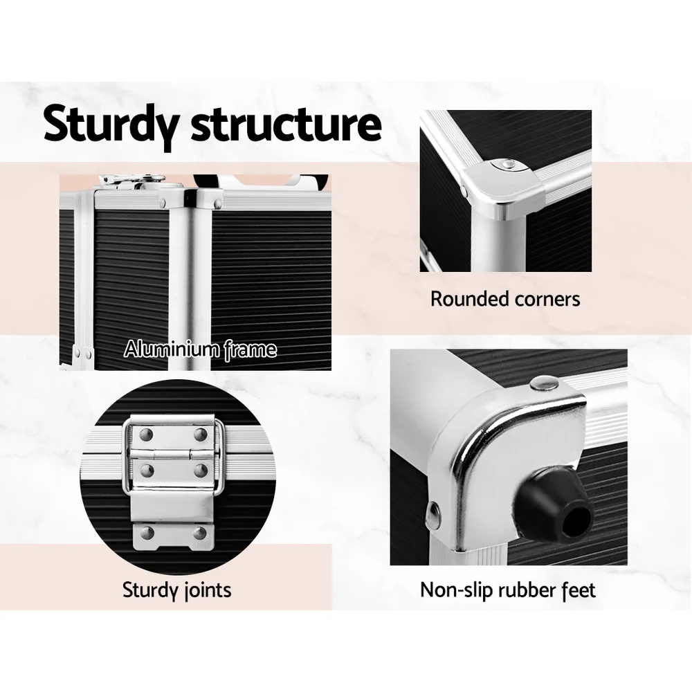 Embellir Portable Cosmetic Beauty Makeup Carry Case, Aluminum, 28x17.5x31cm, Diamond Black, with Mirror and Trays