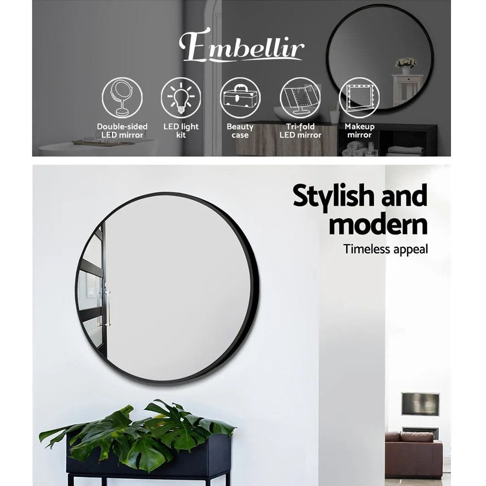 Embellir Wall Mirror, MDF Frame, 70cm Round, Black, Premium Clarity, Home Decor, Bathroom Makeup Mirror