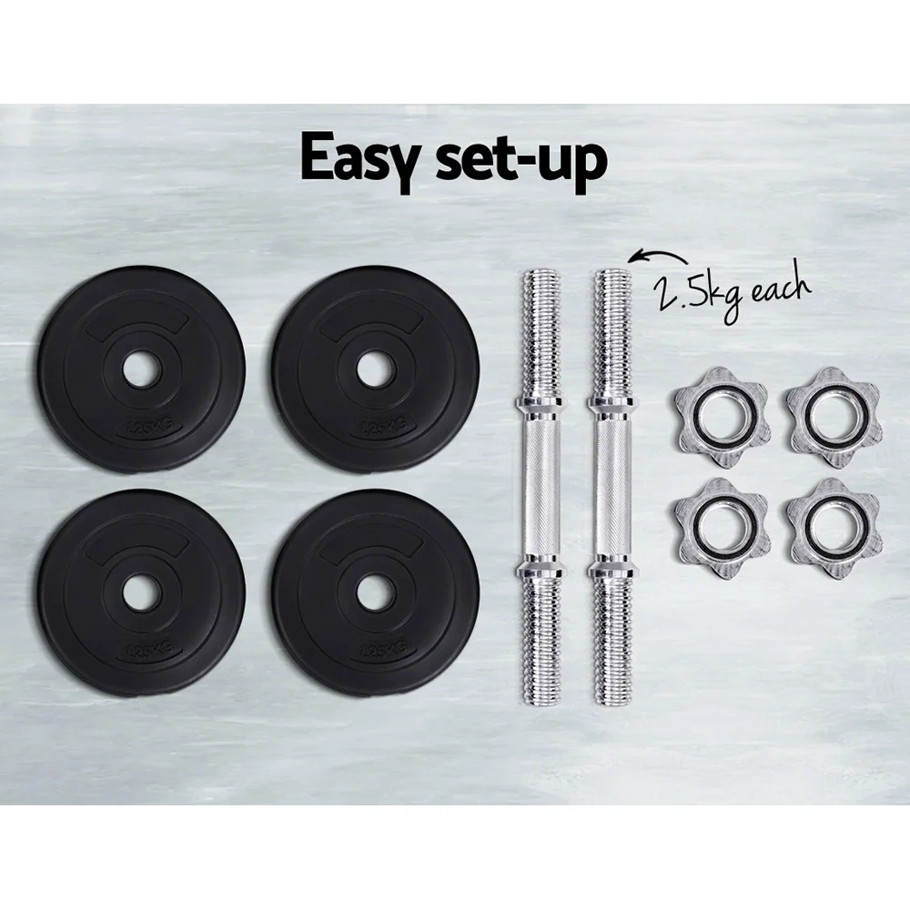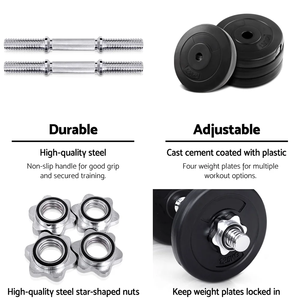 Everfit 10kg Adjustable Dumbbell Set with Non-Slip Handle & Cast Cement Plates for Strength Training