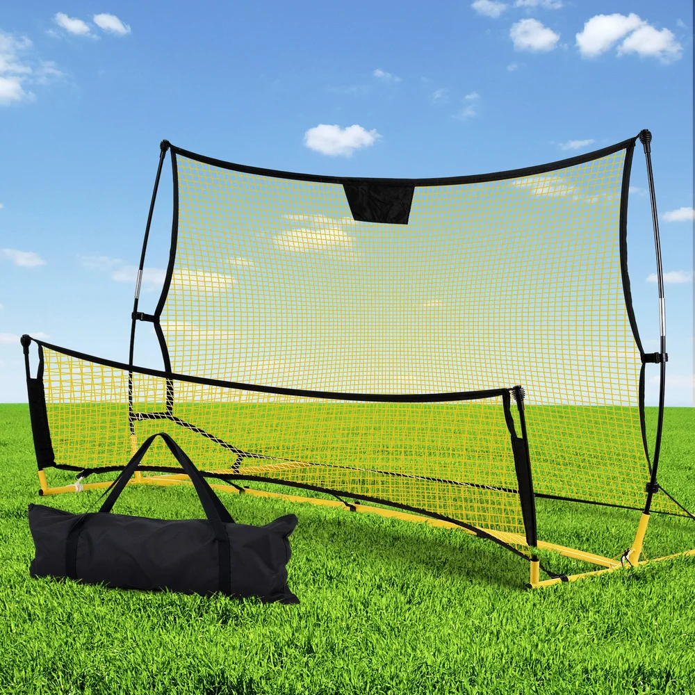Unleash your soccer potential with the Everfit 2.1m Portable Soccer Rebounder Net in vibrant yellow. Designed for enthusiasts of the beautiful game, this versatile training gear is perfect for honing skills such as passing, shooting, and goalkeeping. Its sturdy powder-coated steel frame is 40% thicker for enhanced durability, while the high-density PE net ensures long-lasting performance. Quick to set up and lightweight, it includes four ground stakes for stability during intense play. Easily transportable with the bonus carry bag, this rebounder net is your go-to for real game-like practise wherever you go. With a 1-year warranty, it's the ultimate addition to any soccer lover's gear.