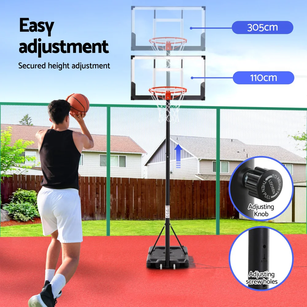 Everfit 3.05M Portable Basketball Hoop Stand System, Height Adjustable, Steel Frame, Weatherproof Backboard, Wheels