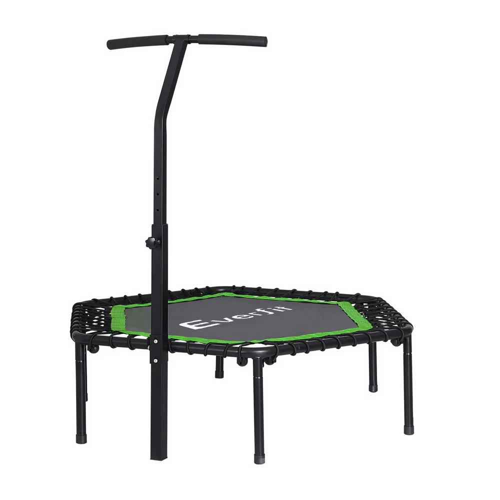 Everfit 48-Inch Hexagon Fitness Trampoline with Adjustable Foam Handrail, Steel Frame, Safe for Ages 12+, Green