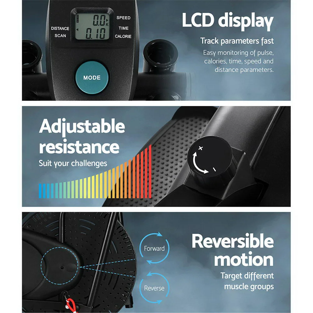 Everfit 4-in-1 Elliptical Cross Trainer Exercise Bike, Adjustable Steel Frame, LCD, Non-Impact, Bonus Resistance Bands