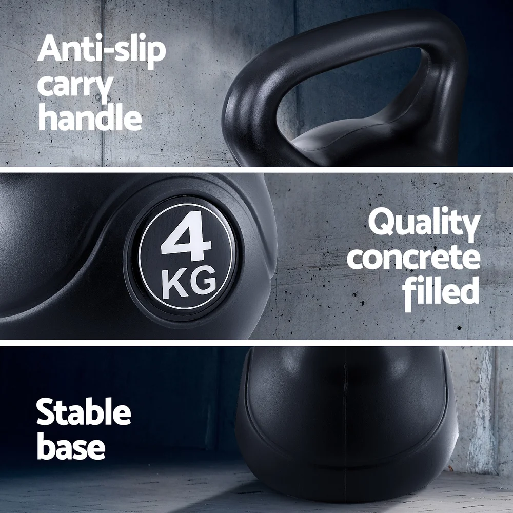 Everfit 4kg Kettlebell Set - Concrete Filled, Anti-Slip Grip, Floor-Friendly, for Strength & Cardio Workouts, Black