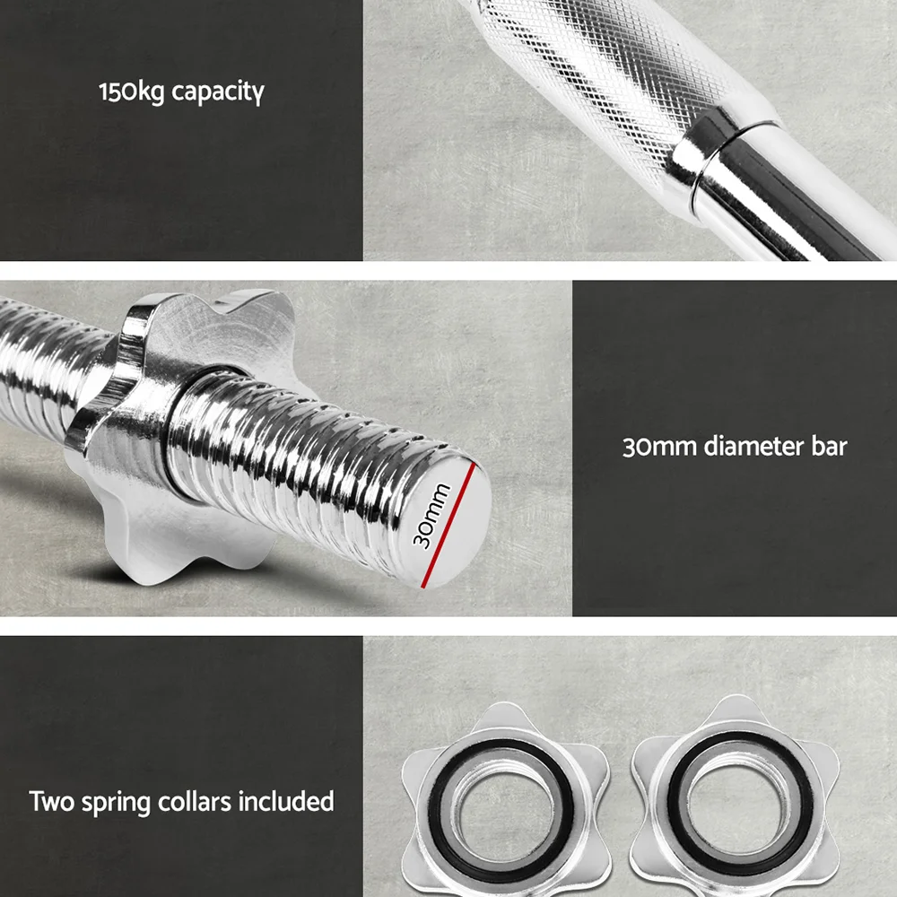 Everfit 168CM Chrome Barbell Bar with Spring Collars, 150kg Capacity, Fits 31-35mm Plates for Home Fitness