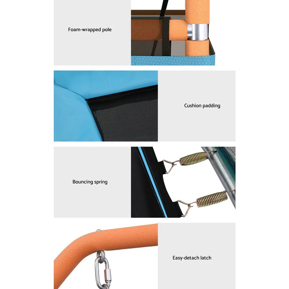 Encourage active play and adventure with the Everfit 6FT Kids Rectangle Trampoline. Specially designed for children aged 3 to 8, this vibrant orange and blue trampoline features a unique 2-in-1 design—use it as a classic trampoline or transform it into a swinging playground. Built with a marine-grade hot-dip galvanised steel frame and a UV-resistant anti-graze mat, it offers superior strength, rust-resistance, and safety. The enclosed mesh netting, foam-wrapped posts, and cushioned padding ensure your child's playtime is always safe and comfortable.
