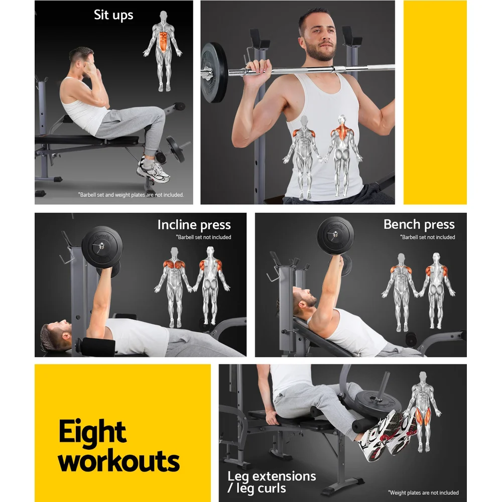 Everfit 8-in-1 Adjustable Weight Bench, Steel Frame, 200kg Capacity, Incline Levels, Home Gym Workout Station