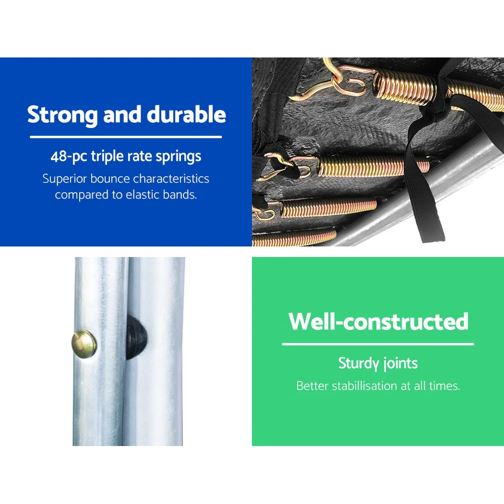 Introduce your kids to endless fun and exercise with the Everfit 8FT Trampoline for Kids. Designed for safety and durability, this trampoline features 48-piece triple rate springs for superior bounce and a heavy-gauge steel framework that’s UV-tested for quality. The trampoline boasts a curve design for added stability, a 20mm thick anti-graze mat, and enclosed safety netting with a double-lock zip-and-clip entry. Ideal for children over 6, it’s engineered for robust play with rust-proof marine-grade galvanisation and a wide UV-stabilised spring skirt. Encourage active play with this vibrant orange trampoline today!