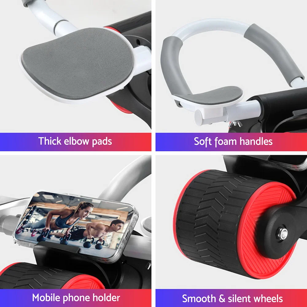 Take your core workouts to the next level with the Everfit Ab Roller Automatic Rebound Abdominal Wheel. Featuring an innovative automatic rebound wheel, stable triangular design, and thick foam grips, this ab roller ensures comfort, safety, and efficiency in every session. The multi-layer non-slip wheel offers a secure grip on any surface, while the built-in mobile phone holder keeps you connected. Smooth, silent, lightweight, and portable, perfect for home or on-the-go fitness.