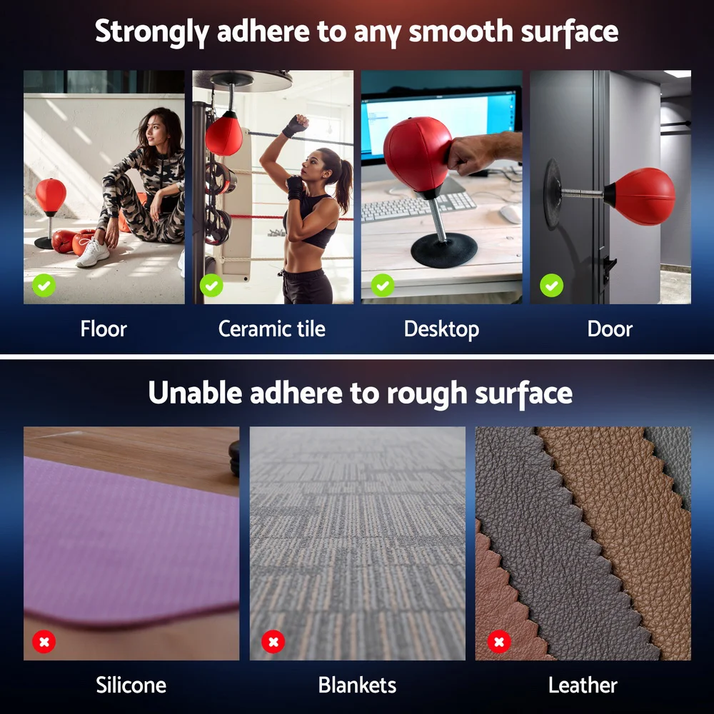 Transform your workspace into an instant stress-relief zone with the Everfit Desktop Punching Boxing Bag Stand Set. This compact 36cm design is perfect for laptop workstations, providing quick focus breaks without clutter. The industrial-strength TPR suction base and ultra-responsive 180° swivel mechanism deliver realistic rebound, while the shock-absorbent iron coil spring ensures durability. With tool-free 3-step assembly and a quick-inflate hand pump included, it's ready for use in just 2 minutes. Ideal for both office and home, it features non-marking silicone base protectors and universal smooth surface compatibility. Enjoy dynamic visual feedback in red and black for an engaging experience.
