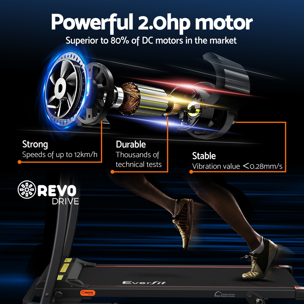 Everfit Electric Treadmill 400mm Incline Home Gym Fitness Equipment, 12 Programs, Foldable, 100kg Capacity, MP3, Black