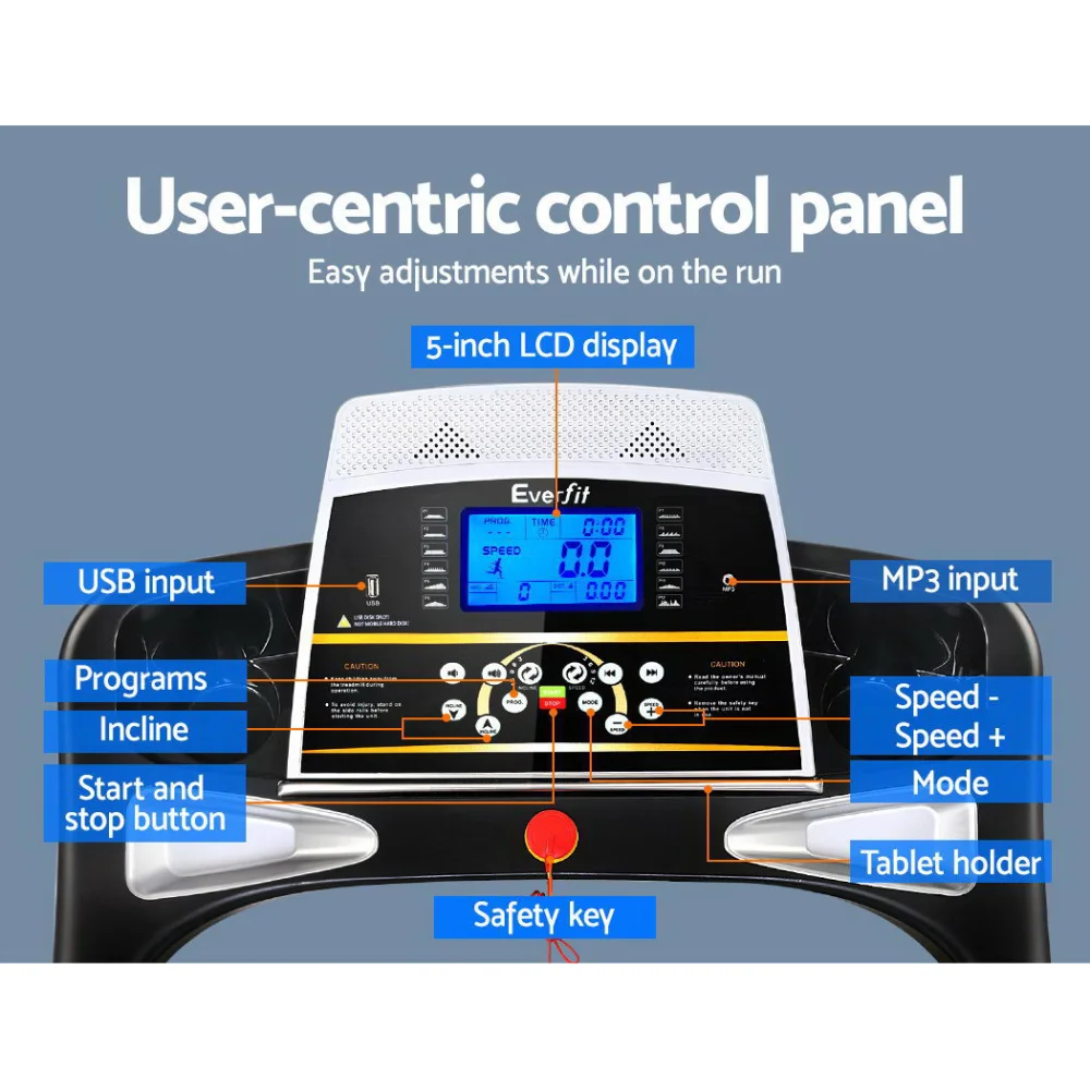 Everfit Electric Treadmill: 2.5HP Motor, 420mm Belt, 12 Programs, USB/MP3, Foldable, Black, Home Gym Fitness Machine