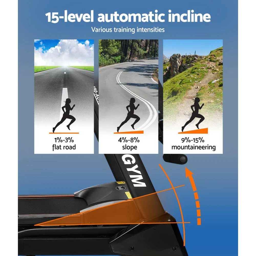Everfit Electric Treadmill Home Gym 3.5HP 18 Speed 15 Incline LCD, Massage Belt, Dumbbells, 48cm Wide, Foldable
