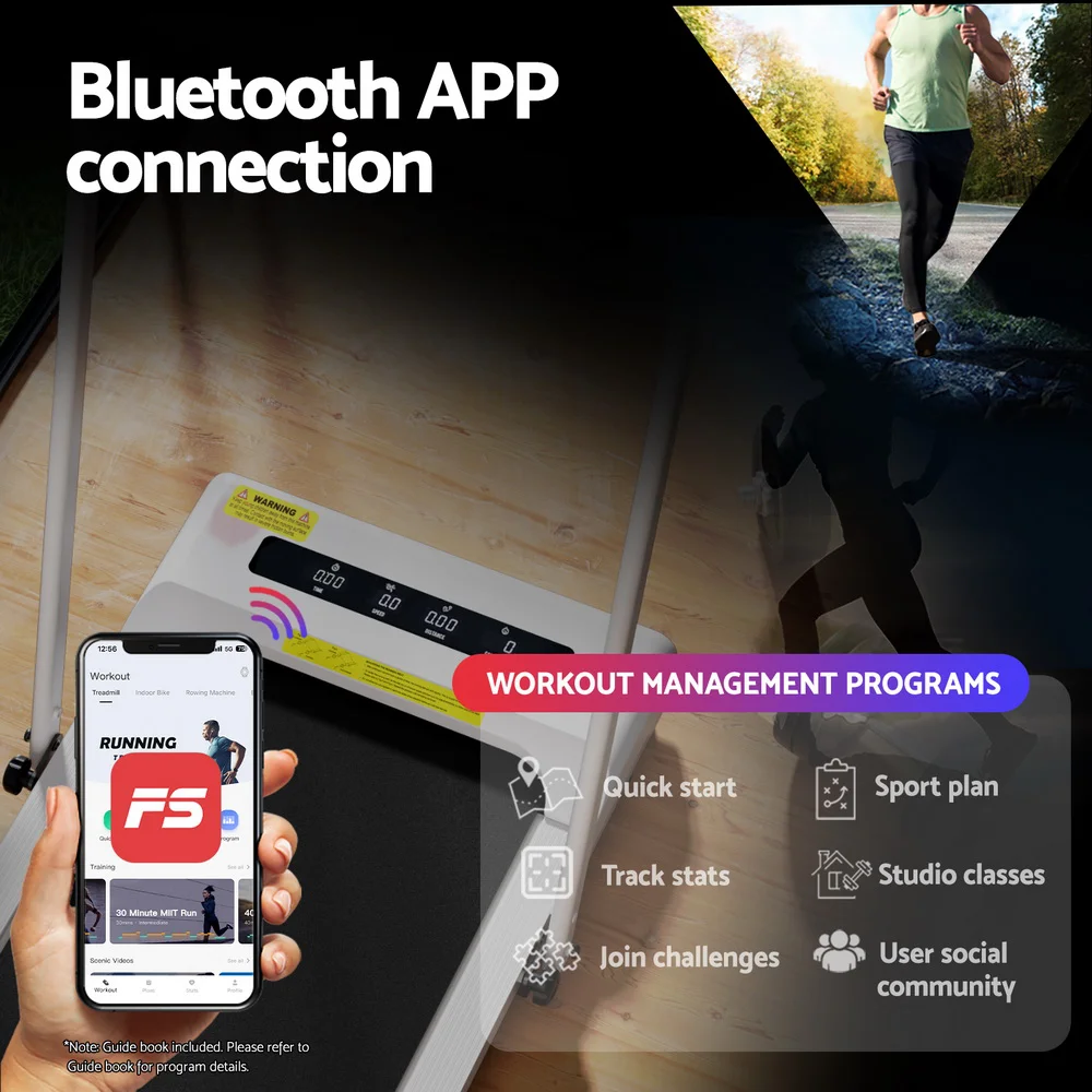 Everfit Electric Walking Pad Treadmill - Compact, Foldable, 3-Level Incline, Bluetooth Control, 380mm Belt, White