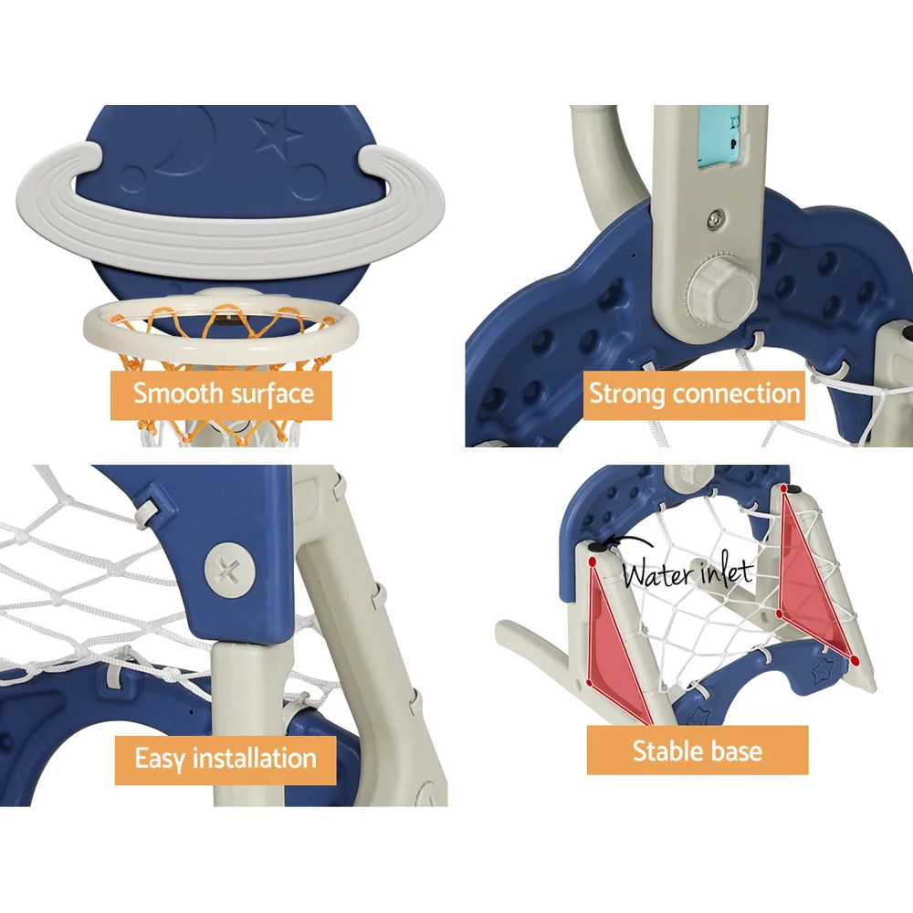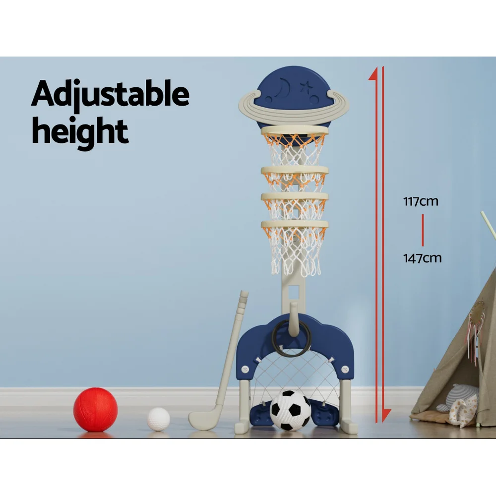 Keezi Kids Adjustable 6-in-1 Sports Centre - Basketball, Soccer, Golf & More, Non-Toxic PP, Ages 3-7, Blue