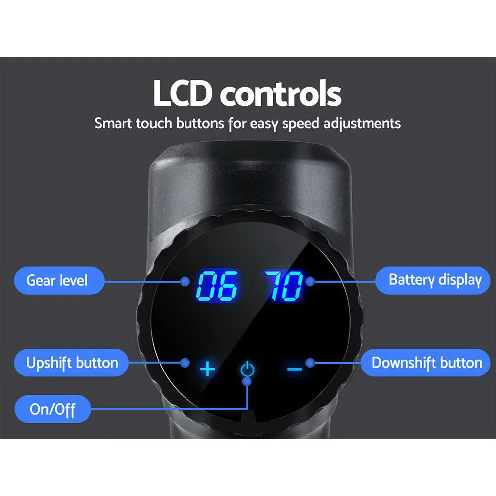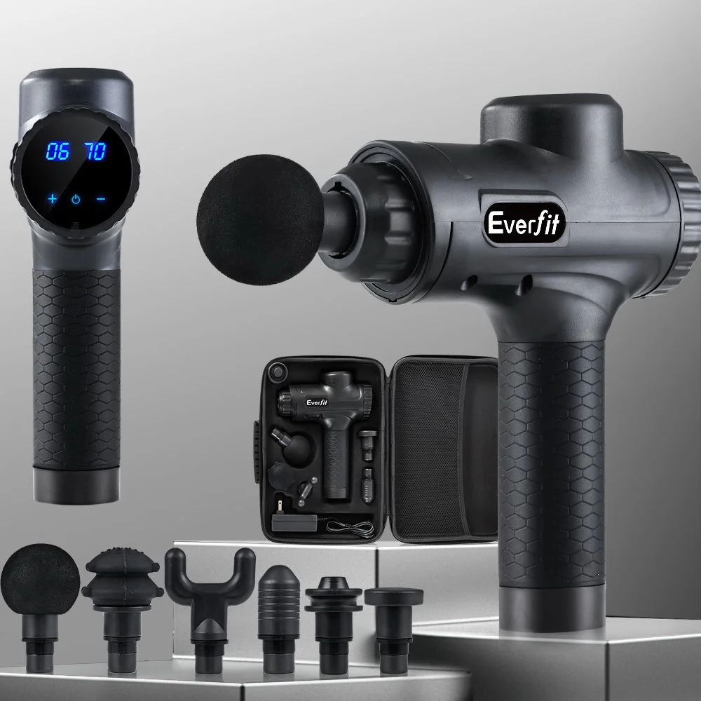 Experience powerful, personalised muscle relief at home with the Everfit Massage Gun. Featuring a robust 20V brushless motor and 30 adjustable speeds, this massager delivers up to 4000 percussions per minute, penetrating 12mm deep for effective muscle recovery. The smart touch LCD and anti-slip grip ensure effortless use, while six interchangeable heads target different muscle groups. With up to 8 hours of battery life, it's ideal for athletes, office workers, or anyone seeking deep tissue relaxation and improved circulation.