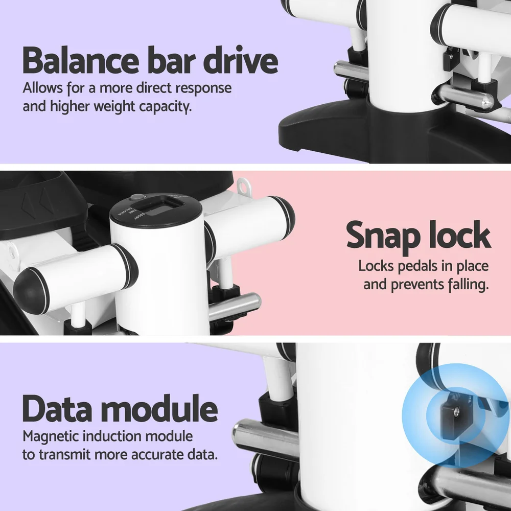 Everfit Mini Stepper with Resistance Ropes – Compact Home Workout, LCD, Steel & ABS, 100kg Capacity, White