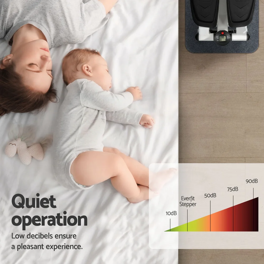 Everfit Mini Stepper with Resistance Ropes, LCD, Hydraulic Resistance, Compact Home Workout, 120KG Capacity