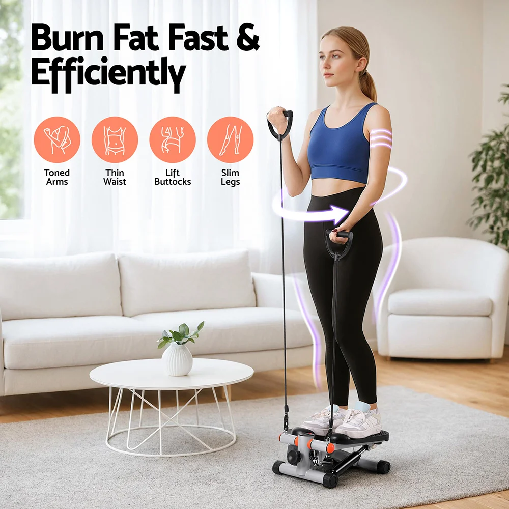 Everfit Mini Stepper with Resistance Ropes, LCD, Hydraulic Resistance, Compact Home Workout, 120KG Capacity