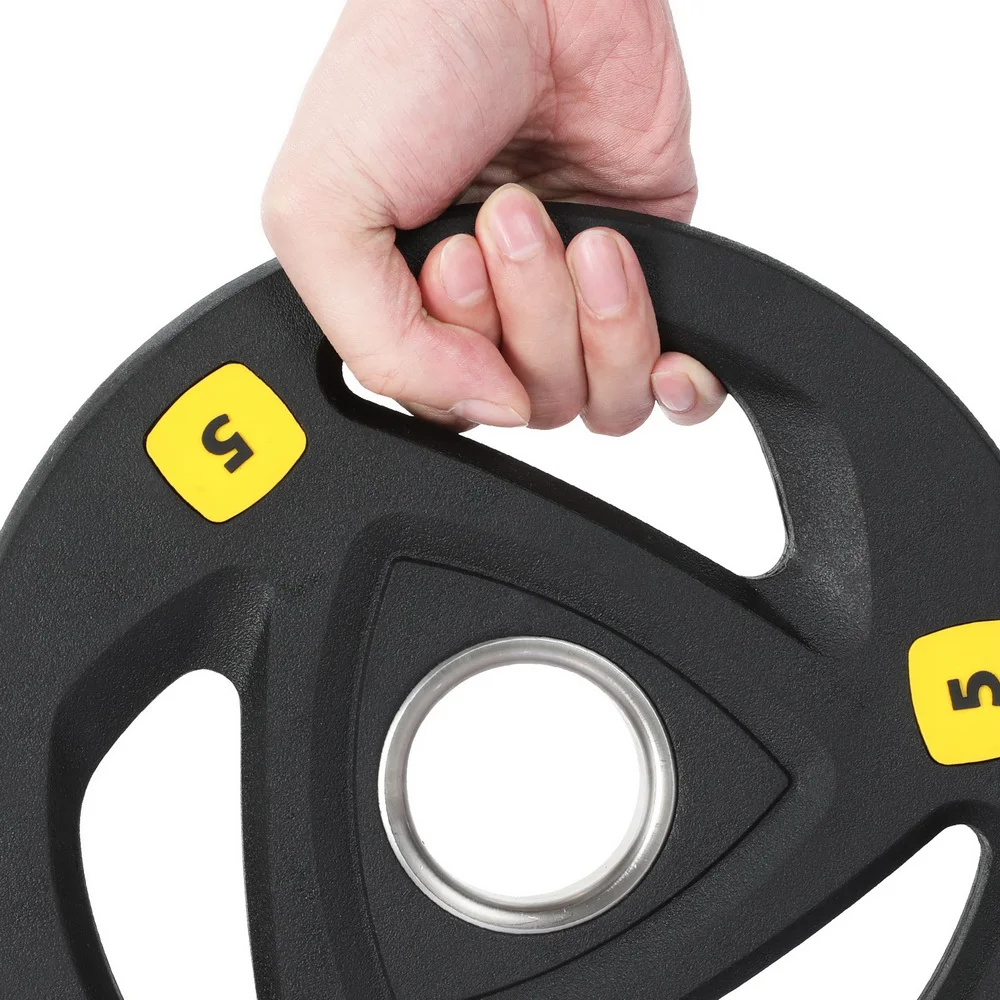 Everfit Olympic Weight Plate 5kg Cast Iron with Rubber Coating, 3-Grip, 51mm Hole for Barbells & Dumbbells, Black