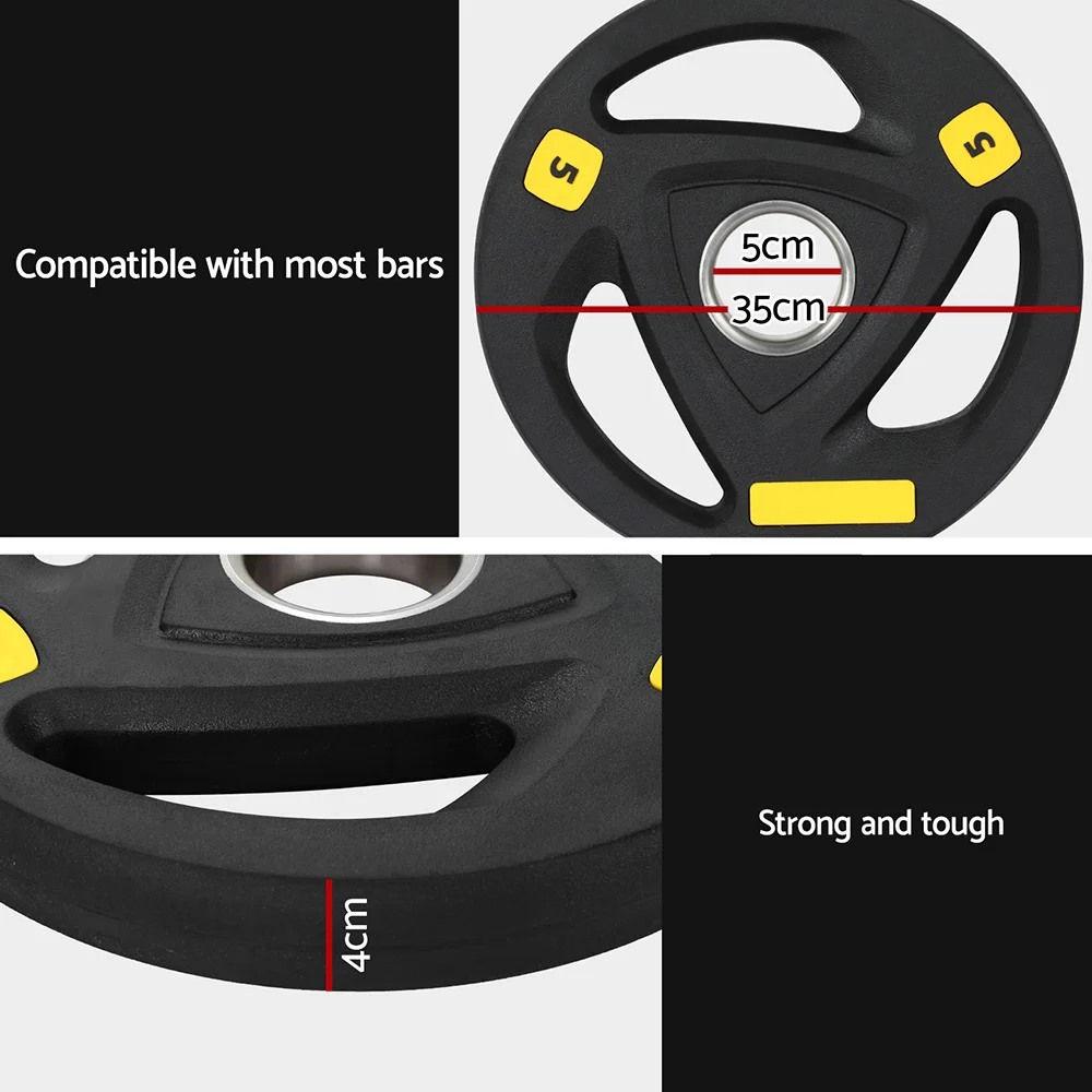 Everfit Weight Plates 5kg x 2 Cast Iron Olympic Size, Rubber Coated, Triple Grip, for Dumbbells Barbells Home Gym