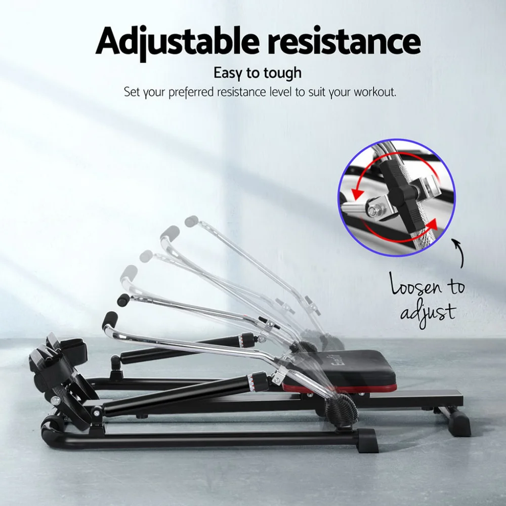 Everfit Rowing Machine: Elastic Rope Resistance, Steel Frame, Foldable Design, 4 Levels, LCD, 150kg Capacity