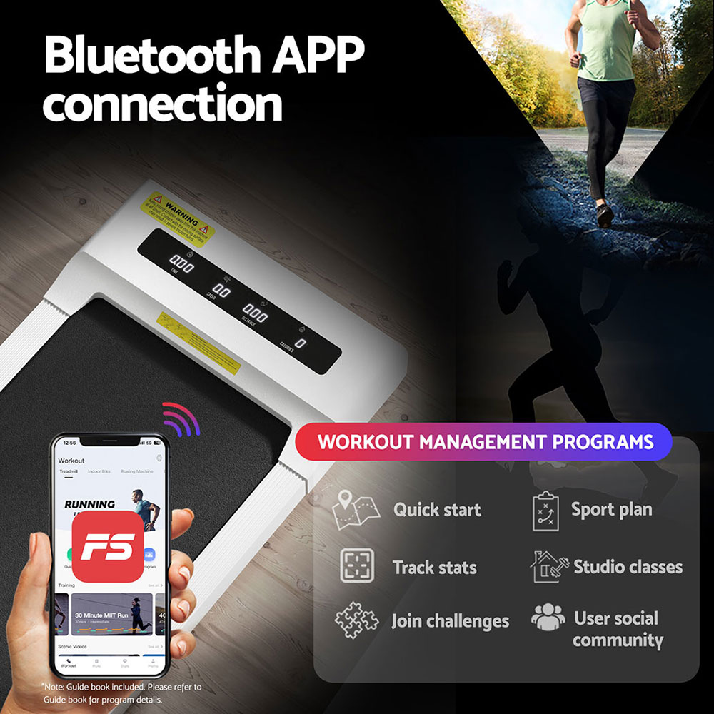 Everfit Electric Walking Pad 380mm White, Foldable Under Desk Treadmill, Bluetooth, No Assembly, Home Gym Fitness