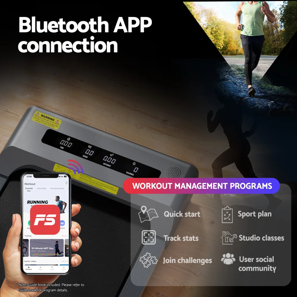 Everfit Electric Treadmill 390mm Incline Home Gym: Foldable, Bluetooth, 12 Programs, 16km/h Speed, Dual Speakers