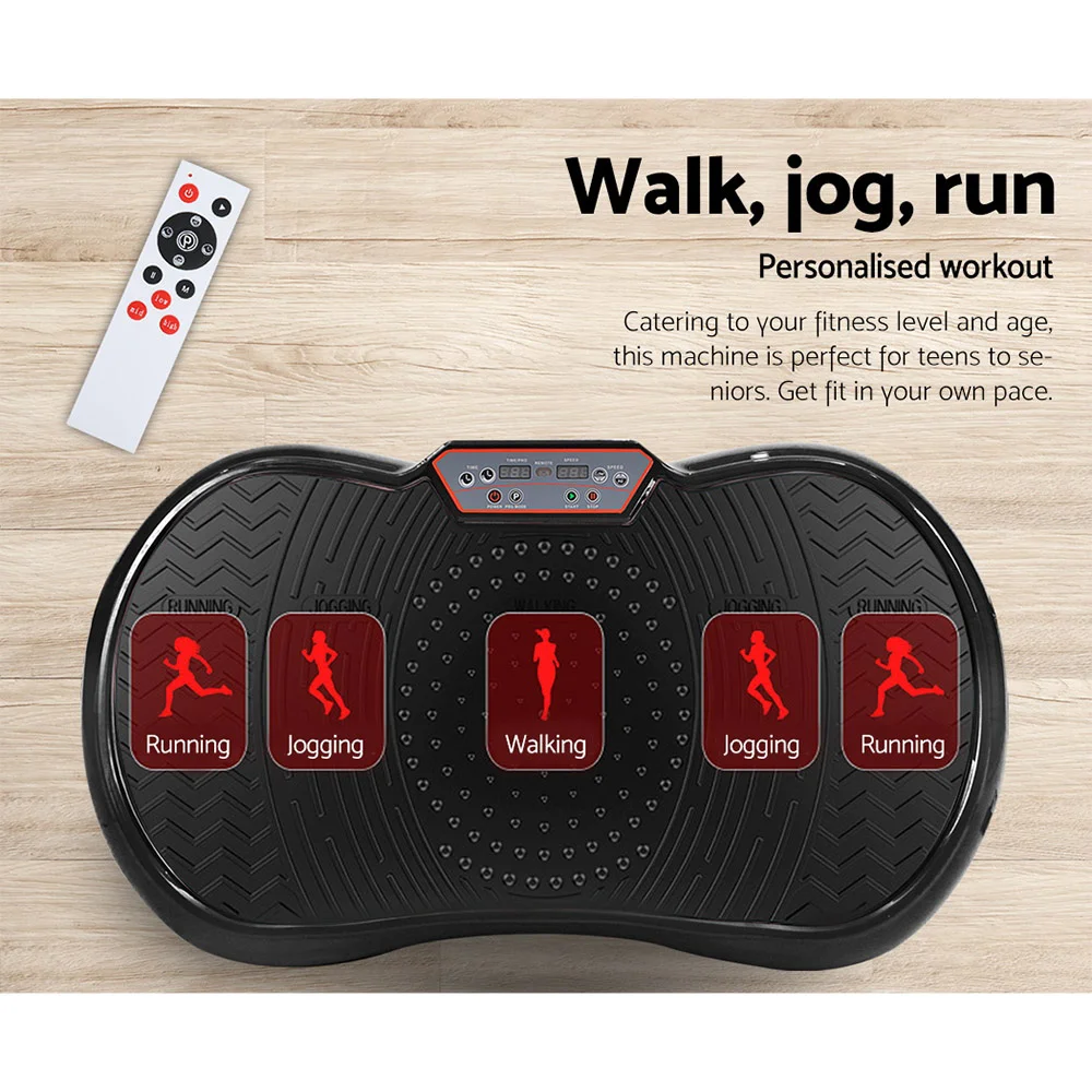 Everfit Black Vibration Machine Platform with Resistance Rope - Dual-Belt Motor, 120kg Capacity, Remote & Reflexology