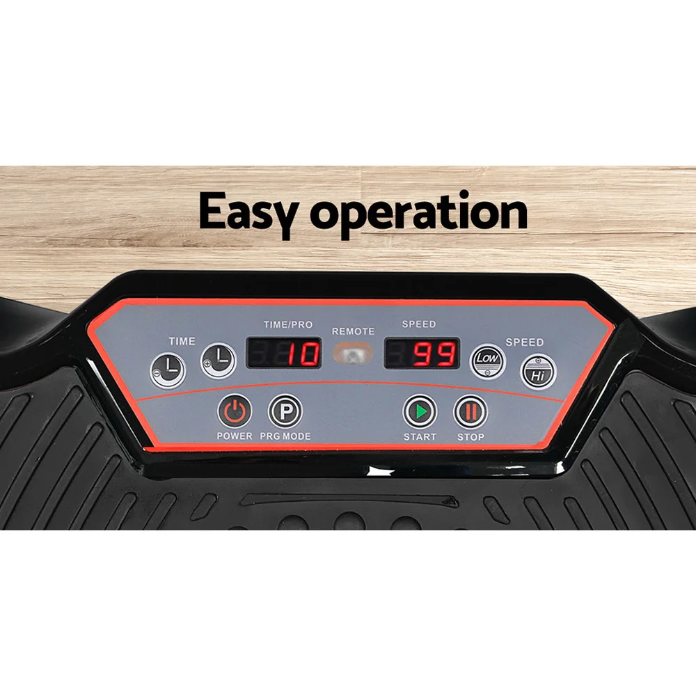 Everfit Vibration Machine Platform - Dual-Belt Motor, 99 Speeds, Resistance Bands, 180kg Capacity, Black Fitness Trainer