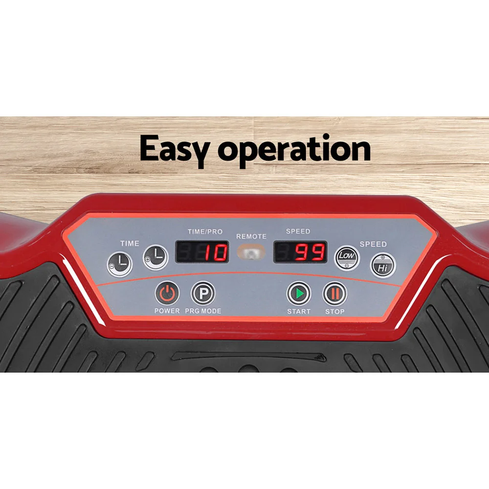 The Everfit Vibration Machine Platform in Dark Red is your ultimate fitness companion, designed to melt away body fat with ease. A quick 15-minute session on this machine equals double the workout benefits of swimming, yoga, and sit-ups, or nearly an hour of jogging. Featuring a powerful dual-belt motor and intuitive digital controls, it targets your waist, thighs, legs, arms, butt, and back for comprehensive slimming and strengthening. With a robust weight capacity of 180kg, it’s ideal for all ages. Enhance your routine with included resistance bands for a more intense workout, all in the comfort of your home.