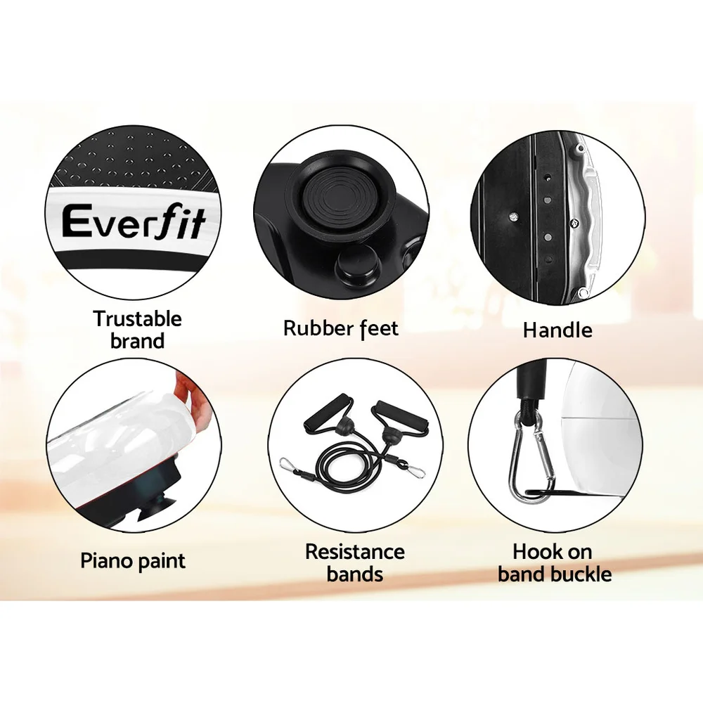 Everfit Vibration Machine Platform - Dual-Belt Motor, 99 Speeds, Resistance Bands, 180kg Capacity, Black Fitness Trainer