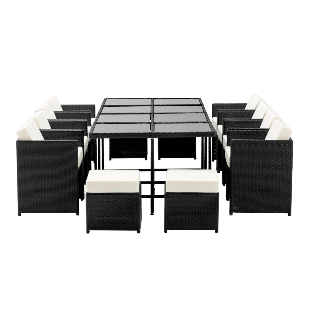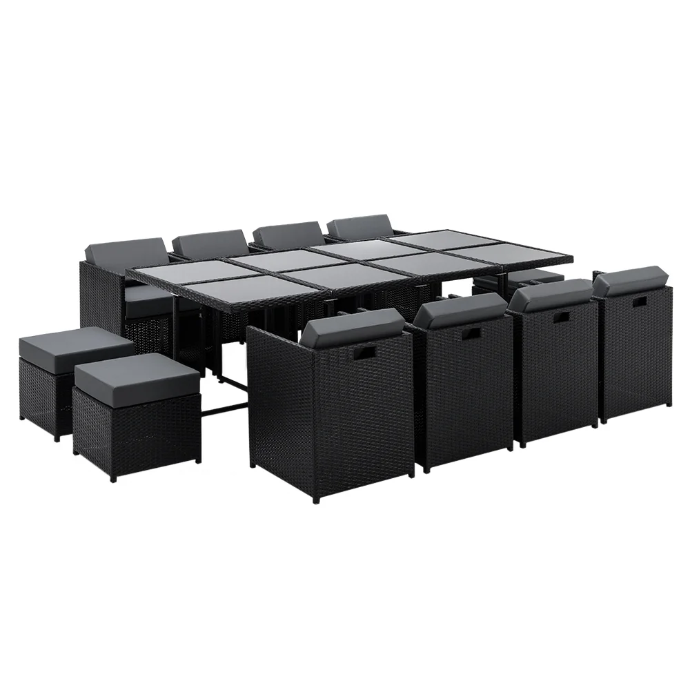 Gardeon Hayman 13-Piece Outdoor Dining Set, Wicker Chairs, Tempered Glass Table, with Cushions & Covers, Black