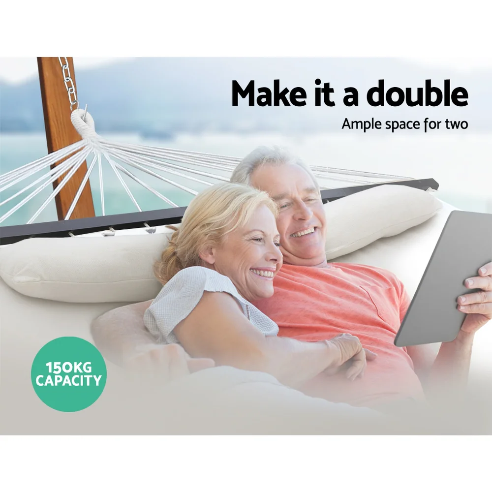 Gardeon 2-Person Hammock Bed with Pillow – 343cm Durable Cotton-Poly Blend for Indoor/Outdoor Use, 150kg Capacity