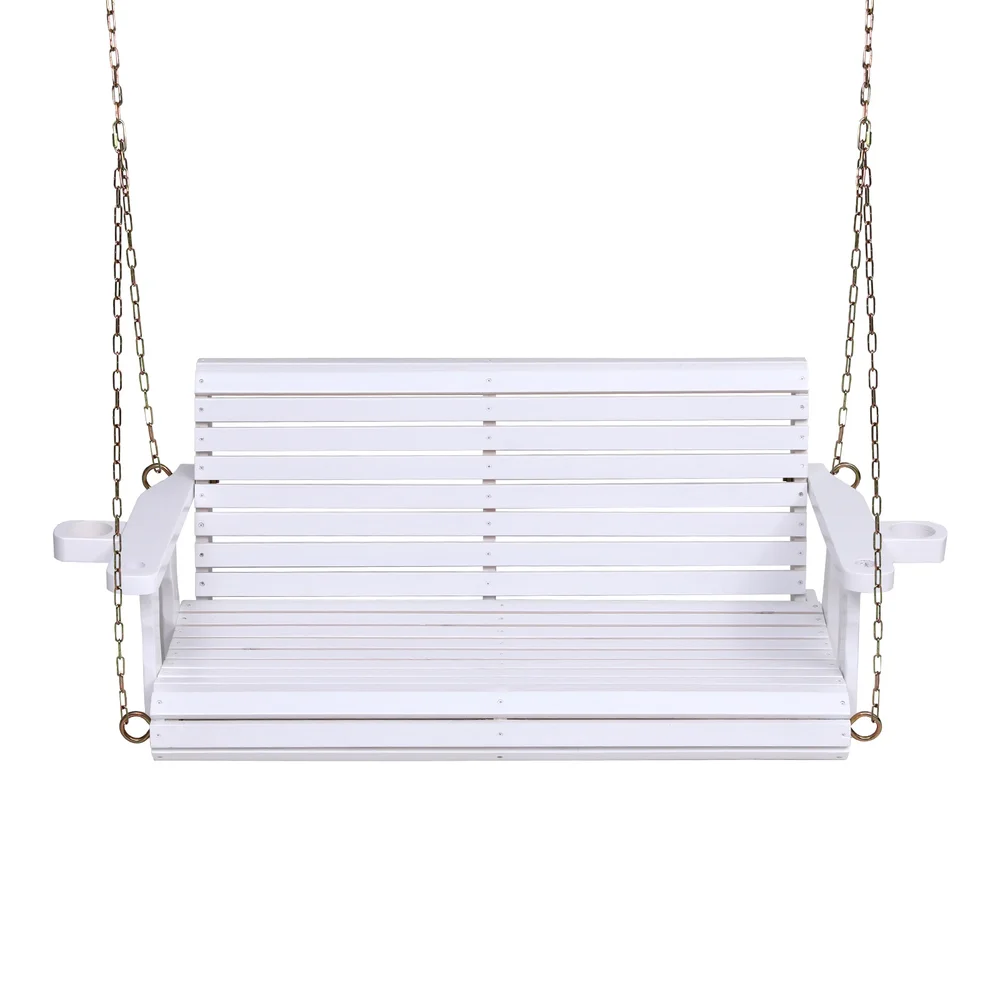 Gardeon Wooden Porch Swing Chair - White Fir Wood 2-Seater with Heavy-Duty Chain, Indoor/Outdoor Use, 300kg Capacity